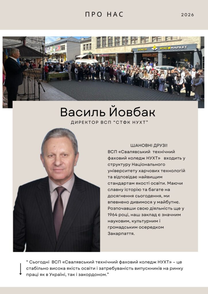 https://youtube.com/shorts/SdeaiKmCR_I?si=dCQfShVv2LutVGFBhttps://youtube.com/shorts/SdeaiKmCR_I?si=dCQfShVv2LutVGFBВикладачі циклової комісії туризму та готельно-ресторанної справи ВСП «Свалявський технічний фаховий коледж НУХТ» системно впроваджують практико-орієнтований підхід до підготовки майбутніх фахівців. Одним із ключових елементів навчання є розробка та реалізація власних туристичних маршрутів, зокрема міжнародних. У межах навчальних дисциплін, лабораторних … Детальніше