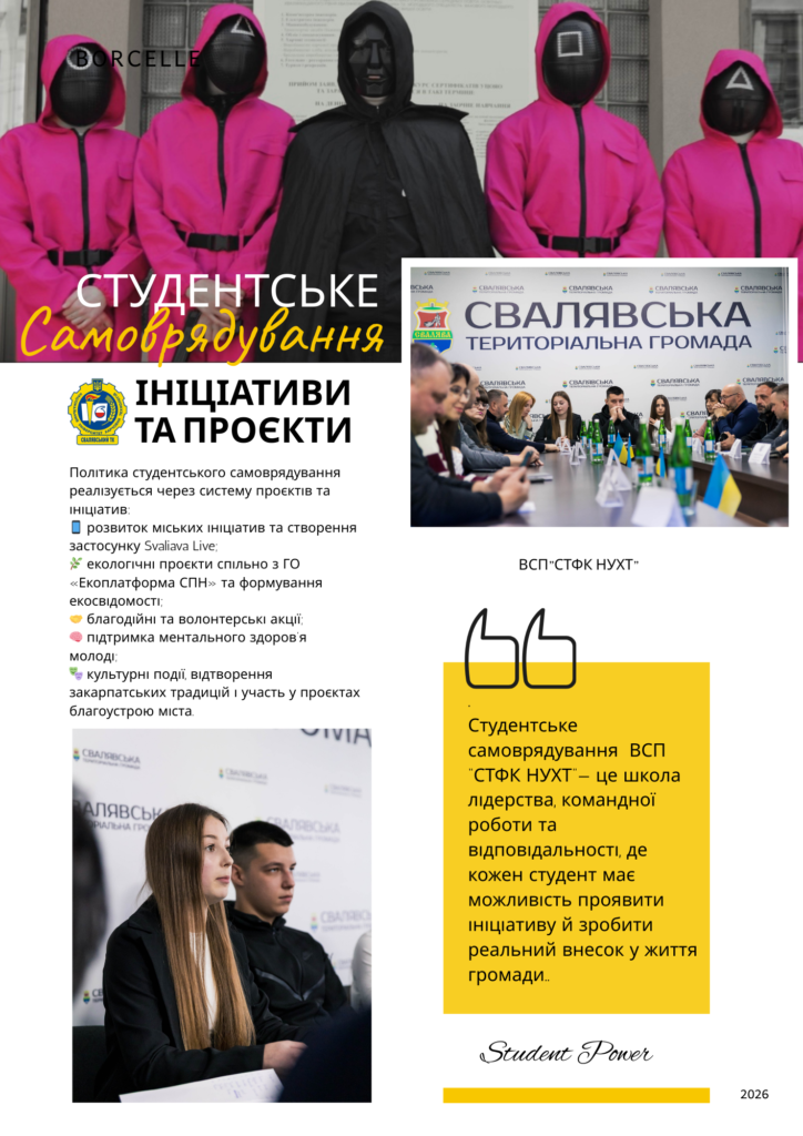 У ВСП «Свалявський технічний фаховий коледж Національного університету харчових технологій» студентське самоврядування є активною та впливовою частиною освітнього середовища. Студентська рада не лише організовує заходи в межах коледжу, а й реалізує соціальні, культурні та громадські ініціативи для Свалявської громади.